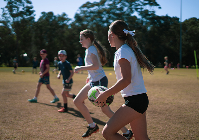 Fast-paced and high-energy, our Rugby League and Touch sessions teach kids evasive movement, safe tackling technique, and teamwork. Great for building game understanding and confidence through modified, age-appropriate games.